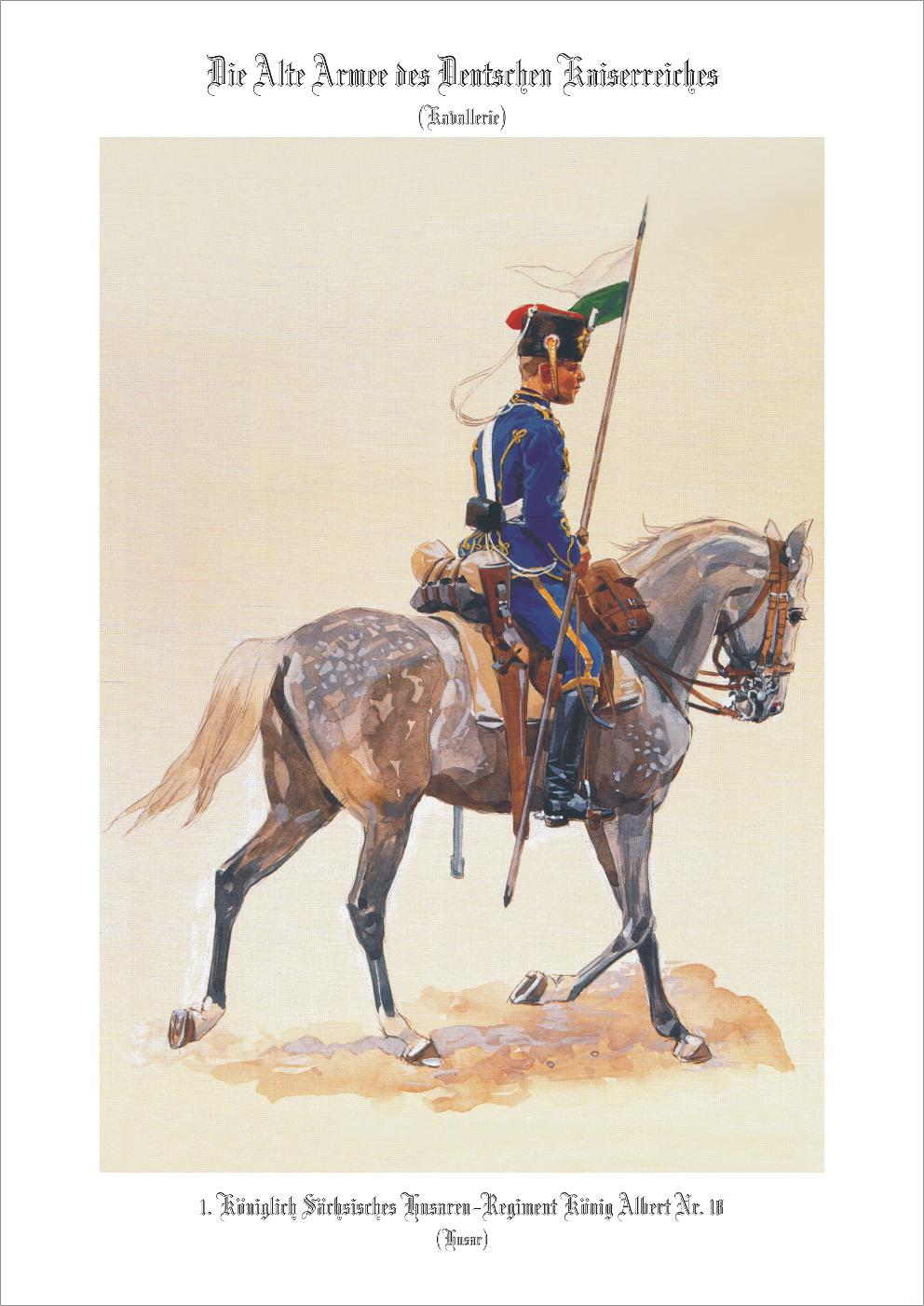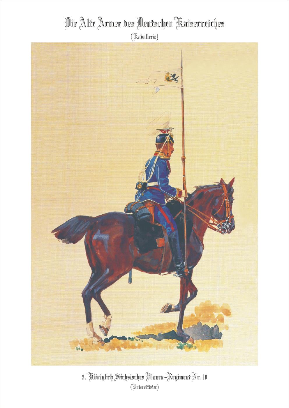 Hochwertige Farbdrucke vom Deutschen Kaiser Wilhelm II. und von verschiedenen Kavallerieregimentern der Alten Armee des Deutschen Kaiserreiches in zwei